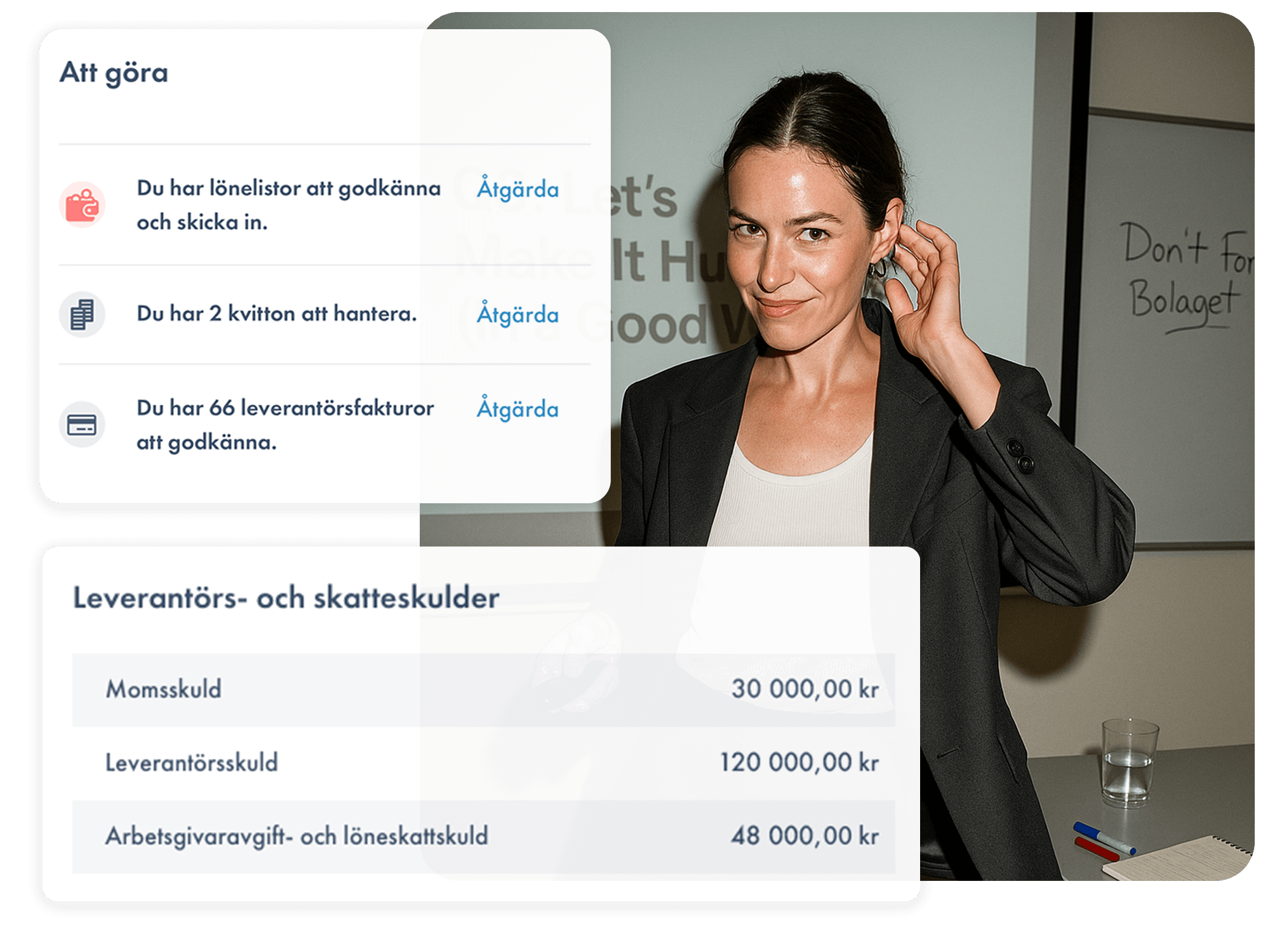 Från skatt och fakturering till löner och kvitton. Bolageriet gör det enkelt att hantera hela ditt företag.